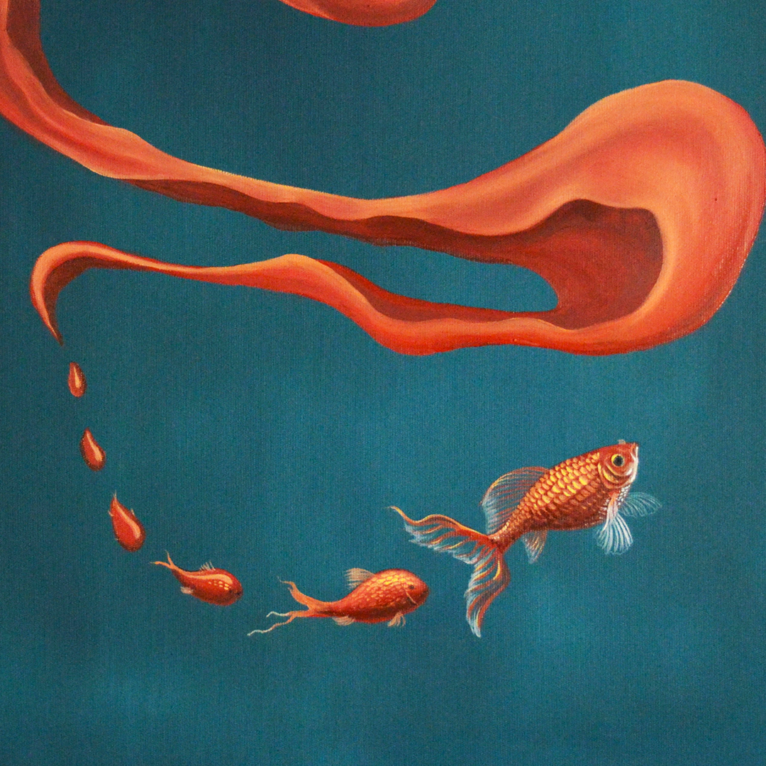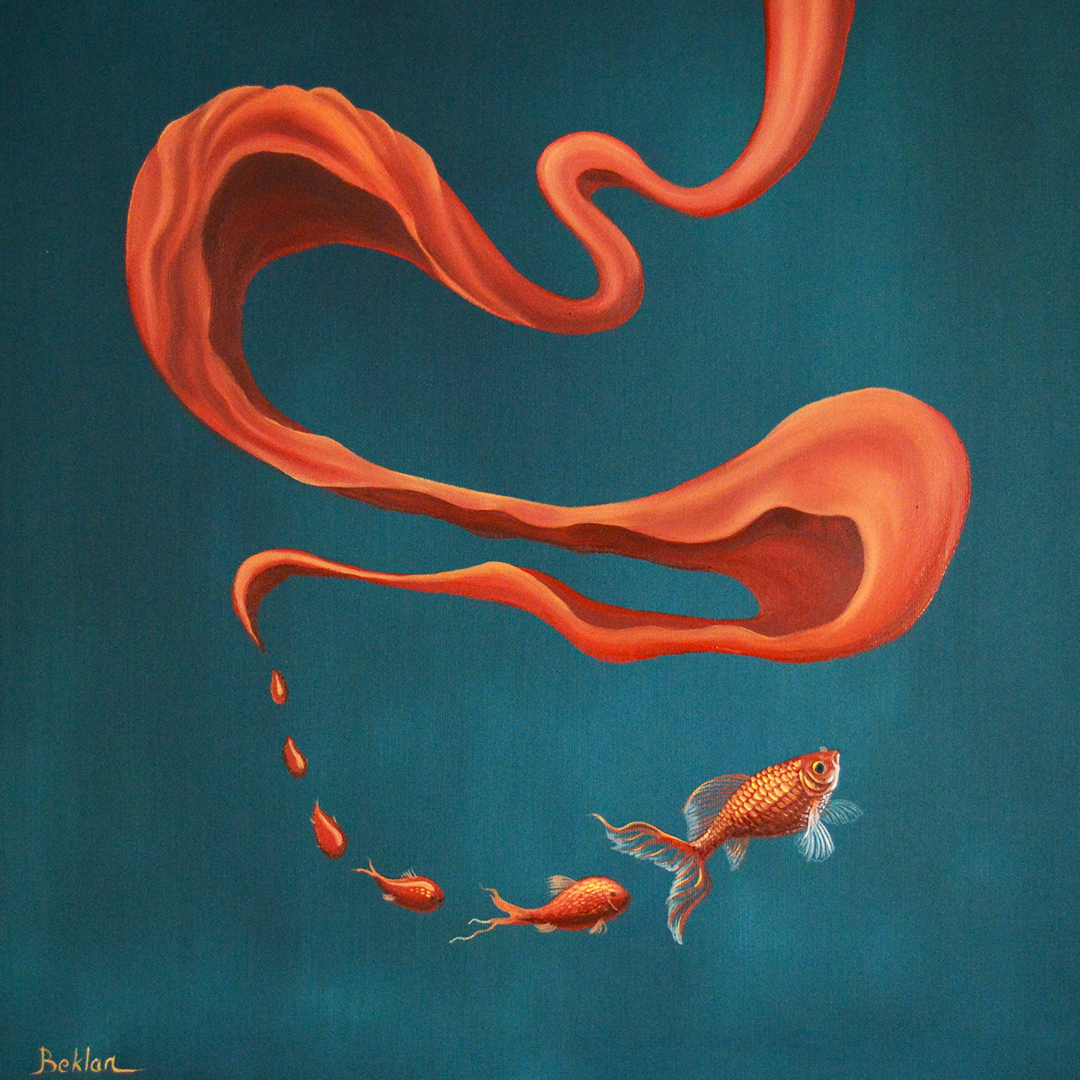 ''BALIĞIN RÜYASI II'' 60X60 CM, TUVAL ÜZERİNE YAĞLIBOYA
