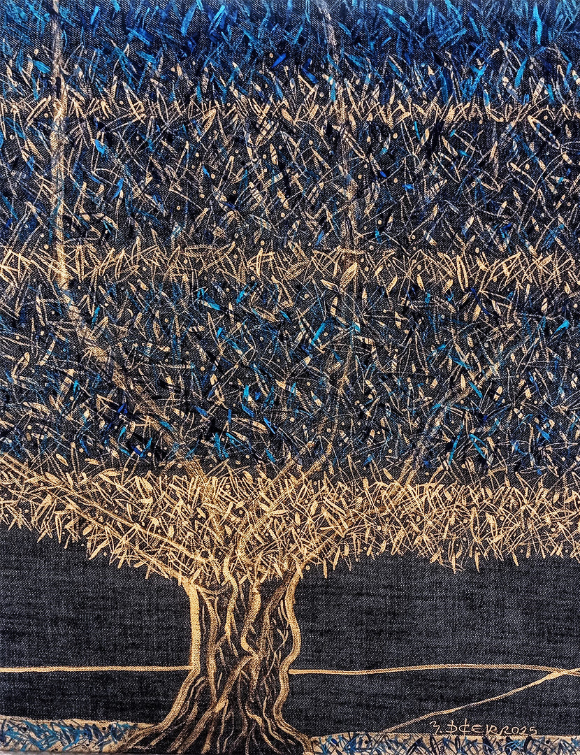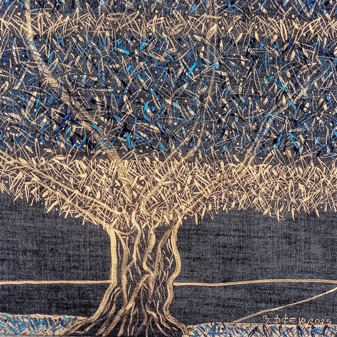 ''ZEYTİN AĞACIM885'' 2025, 60X50 CM, DENİM TUVAL ÜZERİNE YAĞLIBOYA